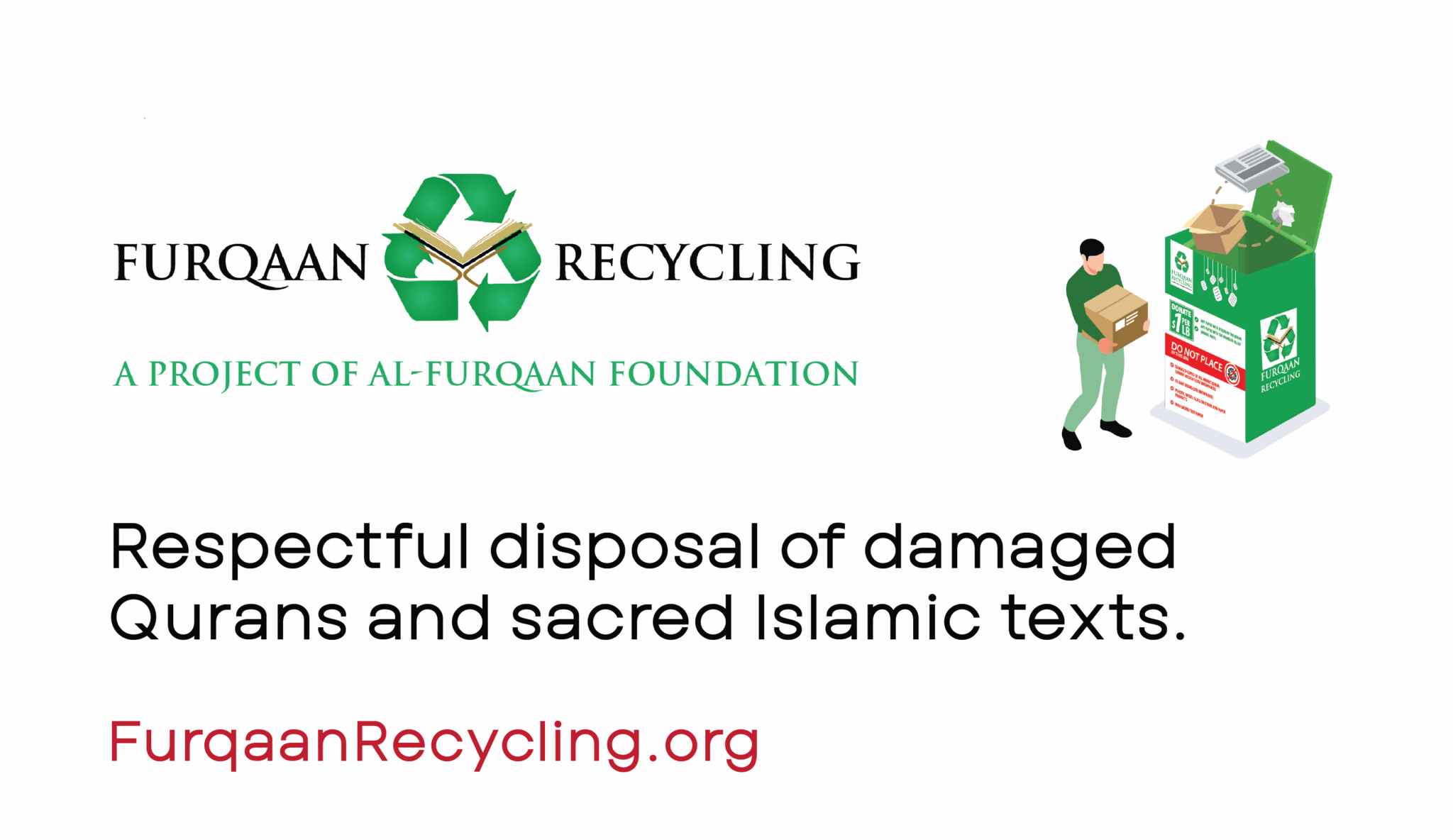 - Furqaan Recycling: Offering Shariah-compliant Quran disposal through a growing network of drop-off locations and mailing options across the U.S., while promoting recycling and redistributing Islamic books to prisons and libraries.